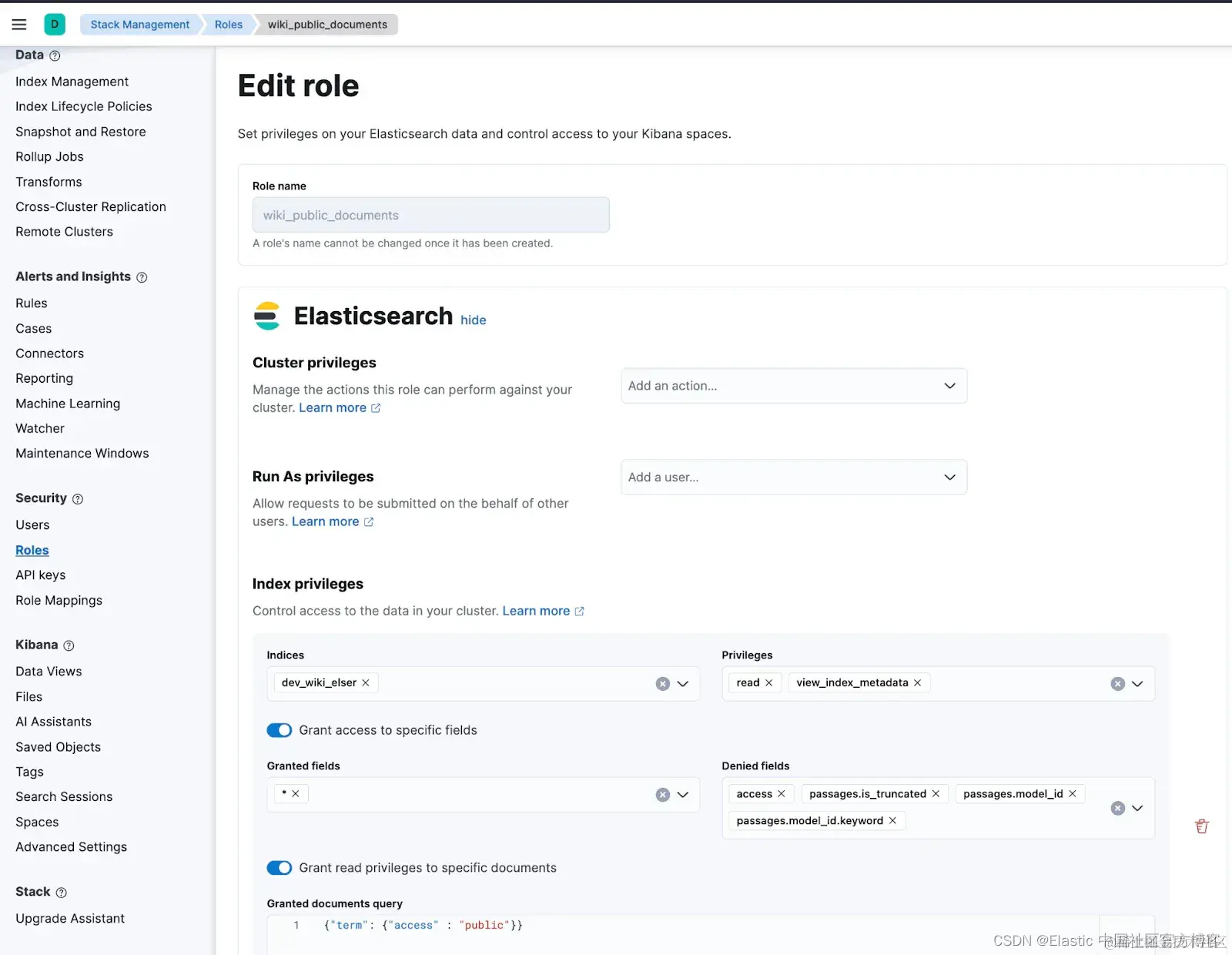 - 访问控制:Elasticsearch 拥有强大的原生 RBAC 控制,以限制/控制访问,包括字段和文档级别的访问控制,这大大减少了保护数据和应用所需的操作和维护复杂性。