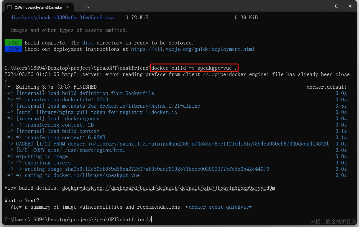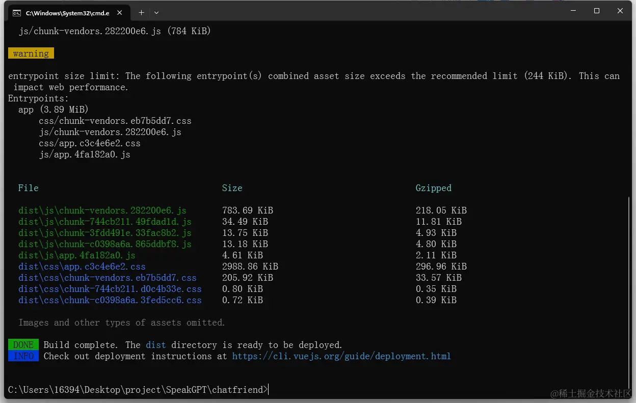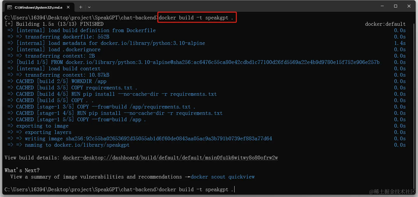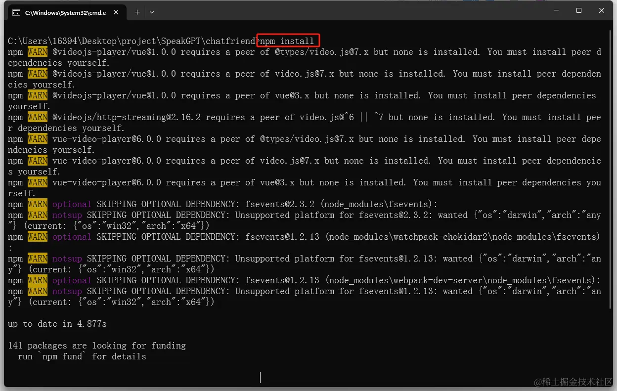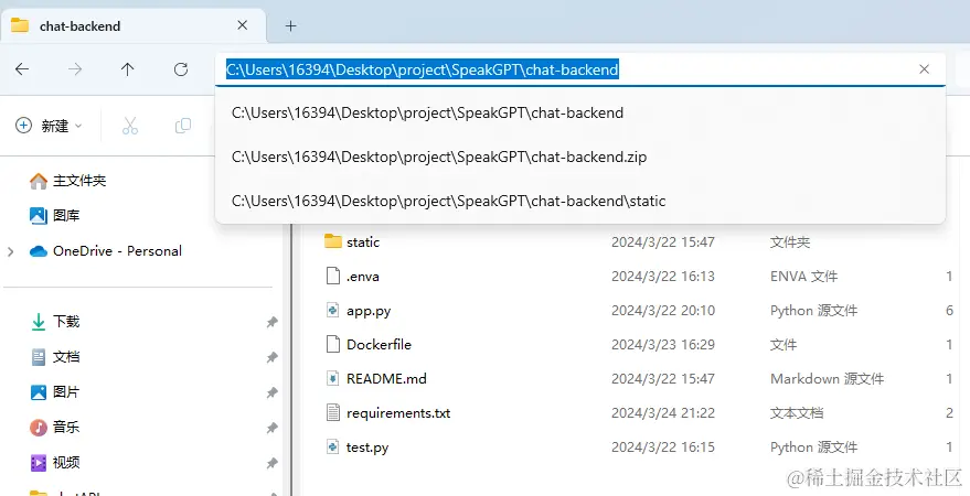 按照上面的方法,在SpeakGPT\chatfriend的路径栏里打开cmd,运行以下命令: