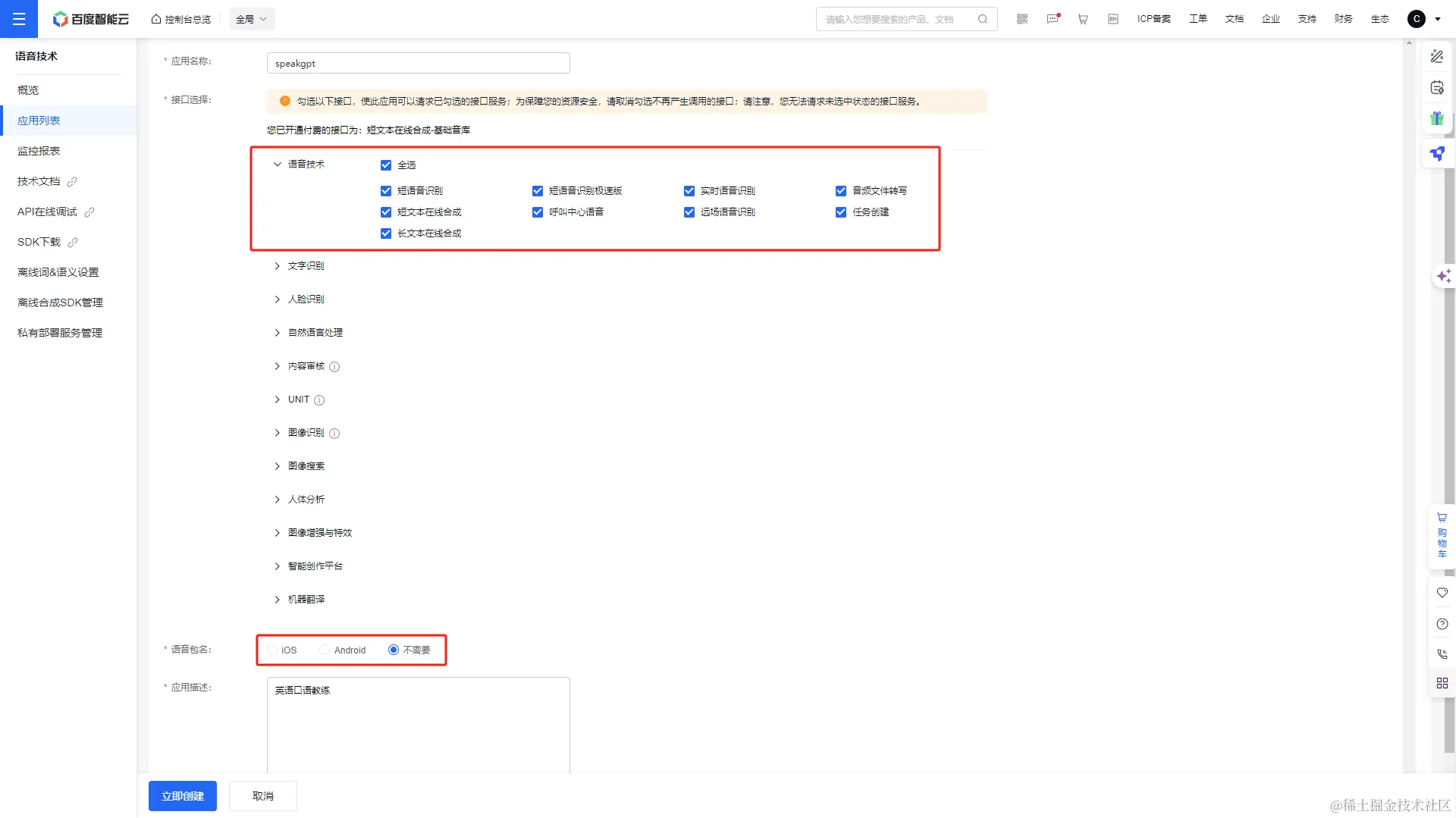 然后**【操作指引】(2)**创建一下应用。(默认配置就可以)