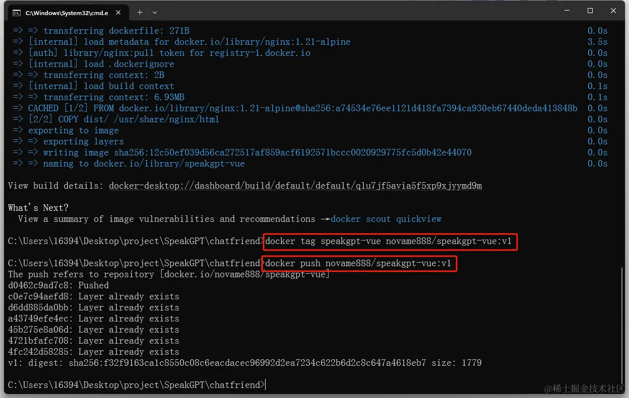 4. docker tag speakgpt-vue novame888/speakgpt-vue:v1