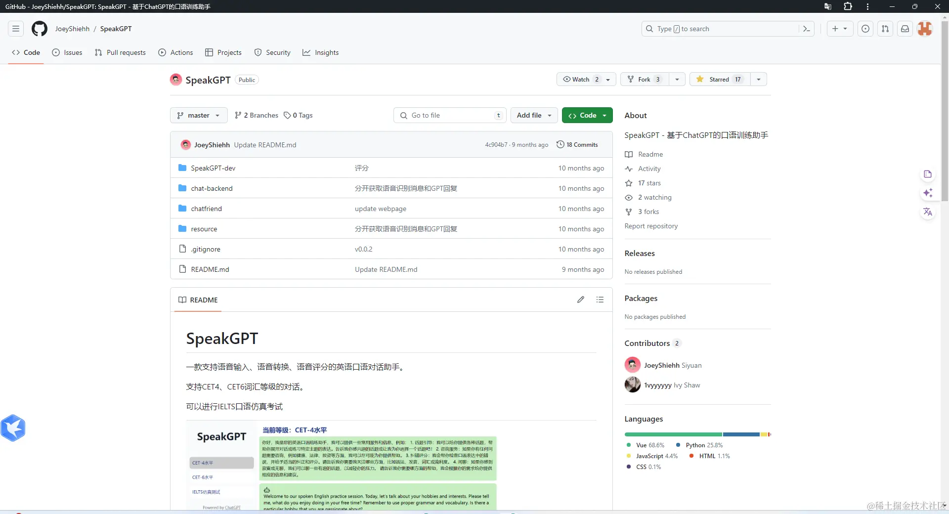 步骤一:去github 或者gitee 搜 ‘口语’ 两个字,就能找到合适的项目。