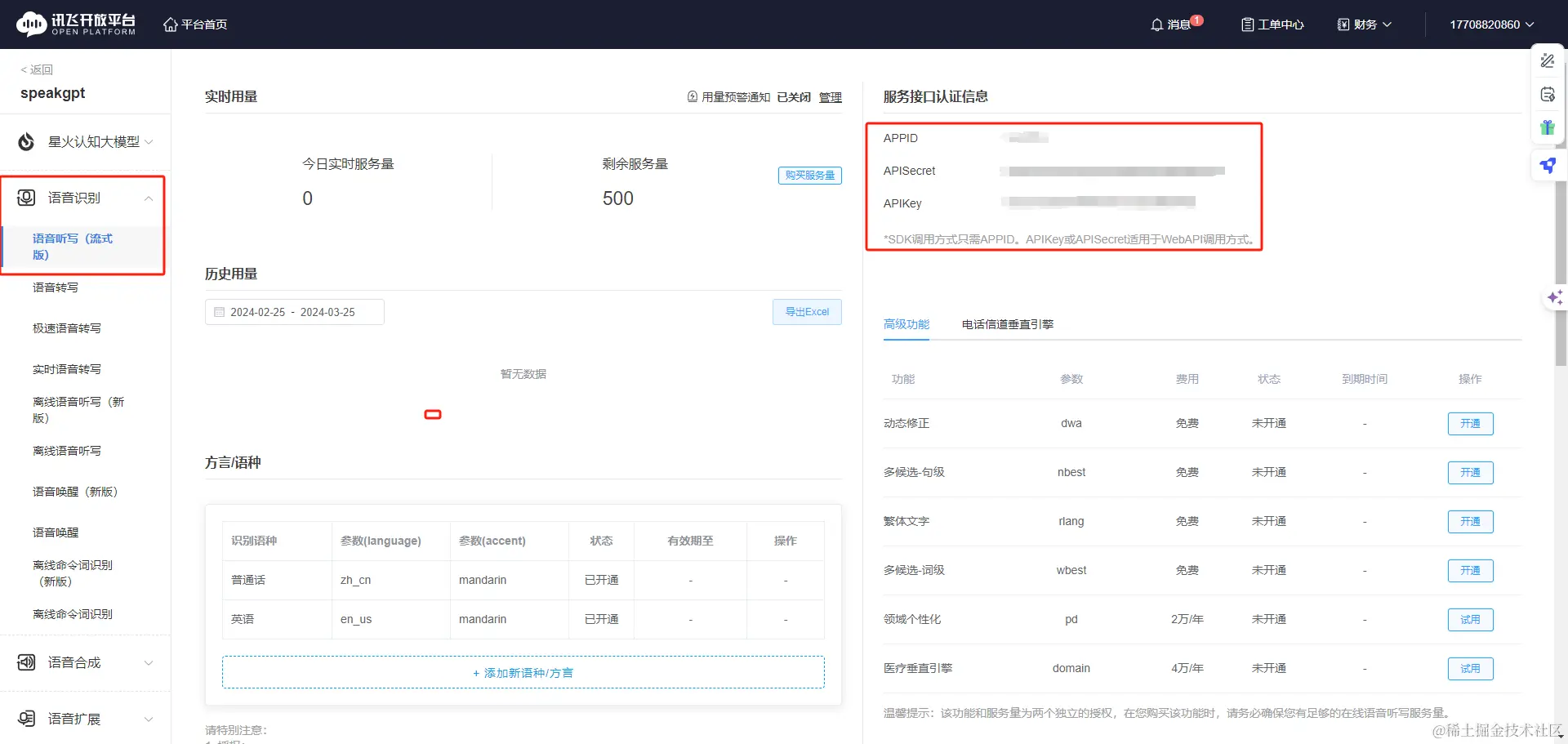 注册了后在上面搜索框搜索【语音技术】,然后就能和我上面页面一样,按照**【操作指引】(1)**体验 免费名额,好像是三个月还是多少,我之前领过过期了,就用了同事的再领了一次。需要身份证和人脸验证。