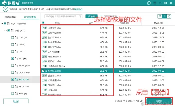 步骤4:将所有需要恢复的文件够勾选完毕后,点击【导出】,并选择电脑空间比较大的磁盘作为文件导出后的保存磁盘。