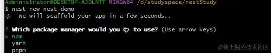 async function bootstrap() { const app = await NestFactory.create(AppModule); await app.listen(3000); } bootstrap();