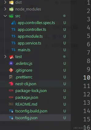 主要的都在src目录下,首先main.ts,这是启动文件,里面编写了启动函数,然后导入了App模块