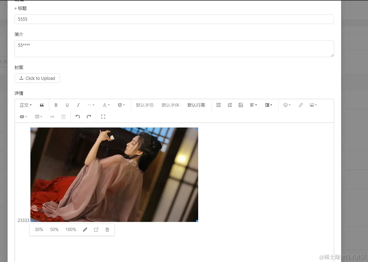 最后尝试在富文本编辑器中添加图片,然后查看接口,ok完成