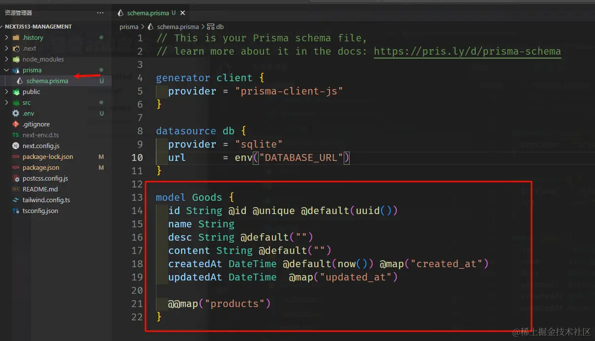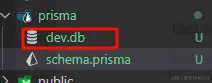 npx prisma init --datasource-provider sqlite指定初始化的数据库是sqlite,如果要使用别的数据库就对照官网把对应名字改一下,之后会生成prisma对应目录和文件