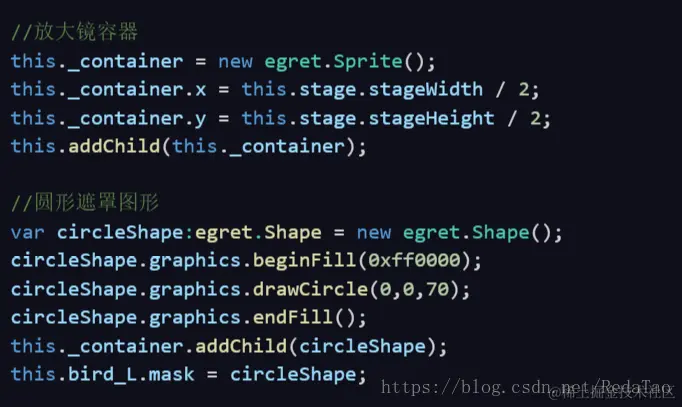 3.4 接着创建一个放大镜容器和一个圆形遮罩: