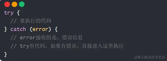 // 如果try里某行代码报错后,try中剩余的代码不会执行了