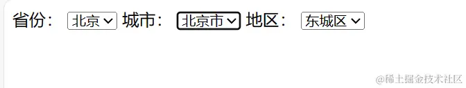 * 需求:获取默认第一个省,第一个市,第一个地区并展示在下拉菜单中