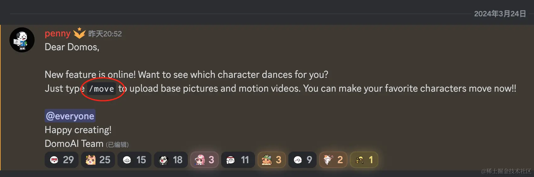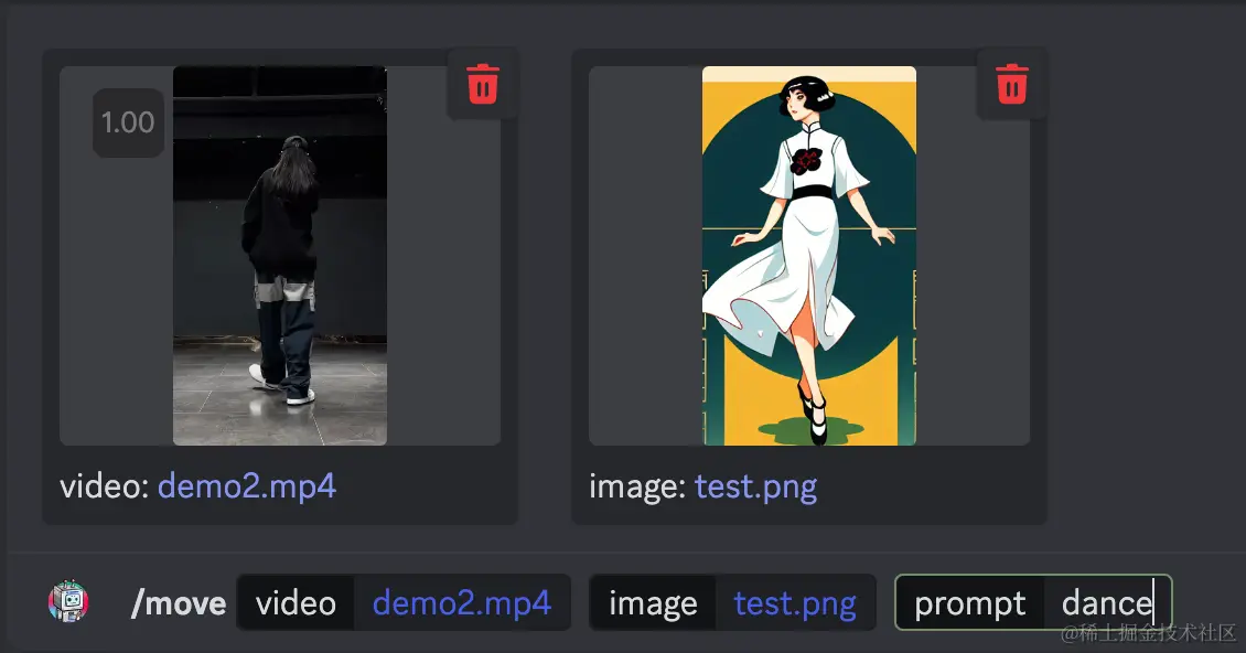使用非常简单,在 Discord 中通过 /move 指令就可以生成。