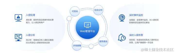 在独有的资产管理能⼒⽀持下,产品不仅能发现⼊侵,还能够提供详细的⼊侵分析和响应⼿段,从⽽让⽤户精准有效地解决问题。