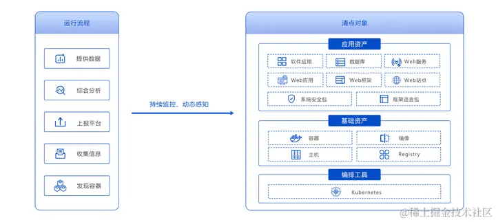 支持资产自动化盘点,可快速从正在运行的环境中,反向自动化构建容器业务资产结构。