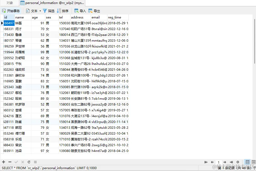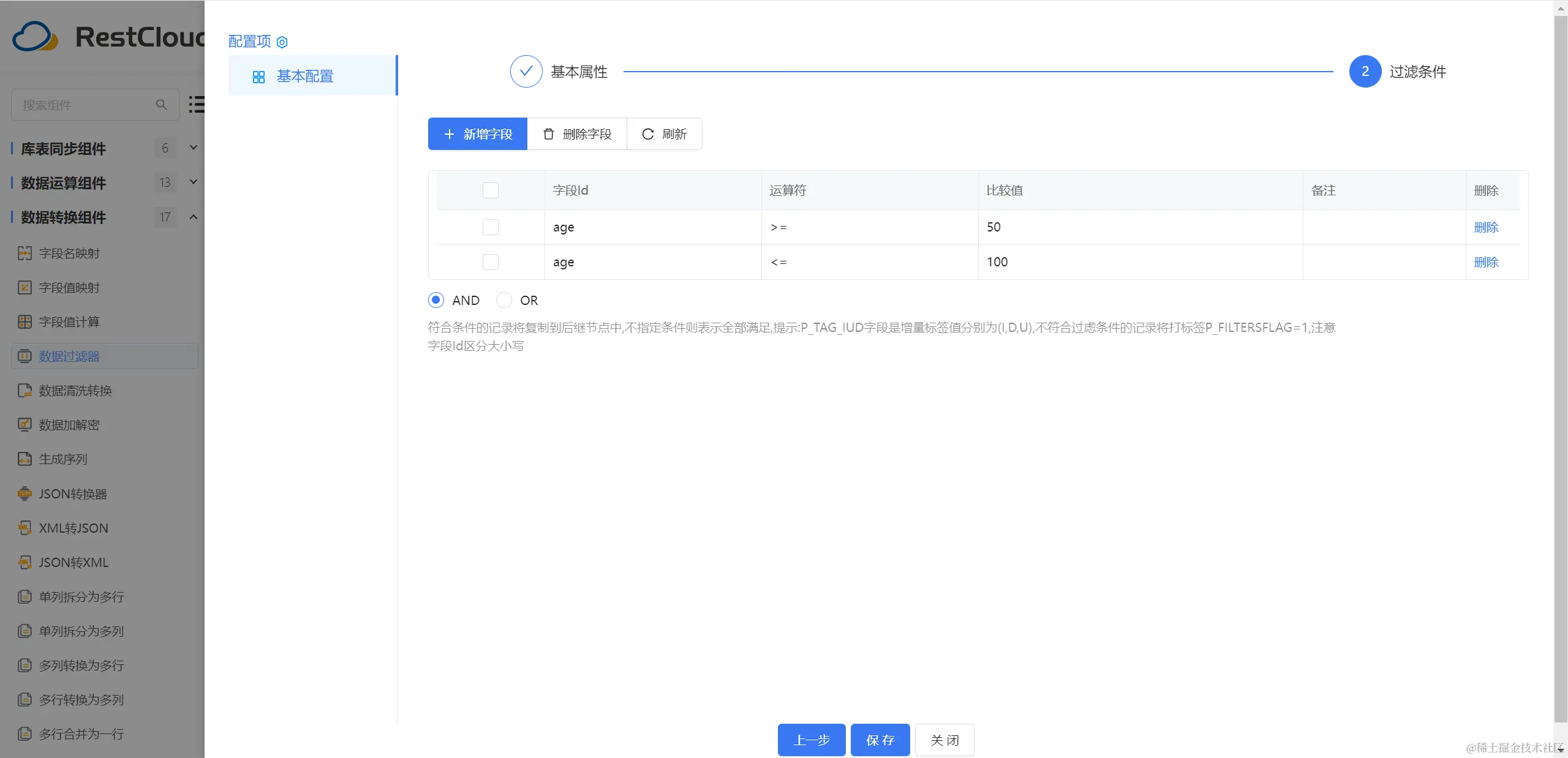 配置数据过滤组件,过滤出年龄在50到100之间的信息