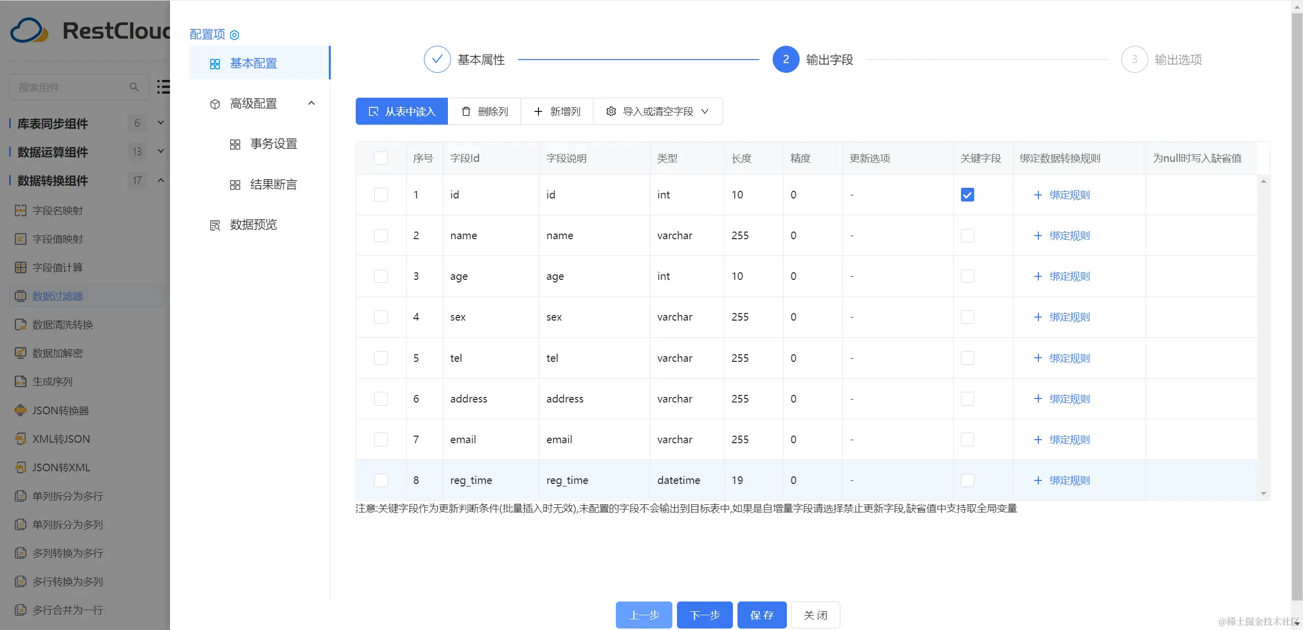 最后,我们在ETL工具中设置数据加载的目标。我们可以选择将数据加载到数据库、文件、消息队列等目标中。我们这里 配置库表输出组件,设置输出目标库。