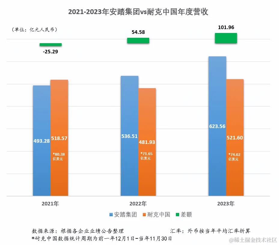 一年前的2023年3月,安踏集团(02020.HK)公布2022年业绩,全年首次超过耐克中国的营收,上演中国企业的后来居上。到了今天,安踏自身的绝对领先成为定数,引领国产品牌完成一次酣畅淋漓的超车,成为新的亮点。