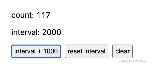 在官方示例中展示的useInterval 的功能,可以概括为以下 3 条: