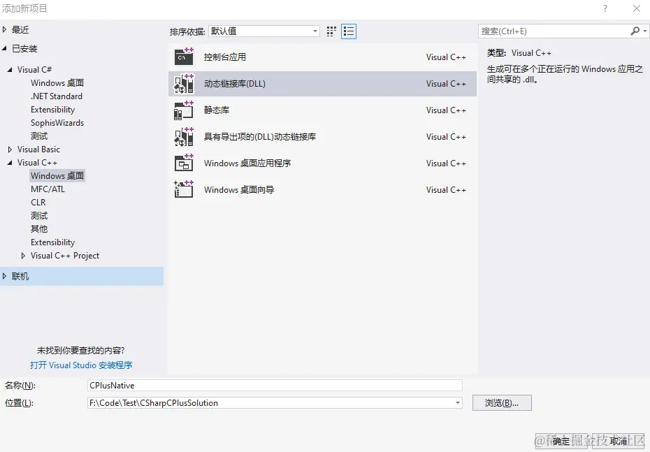 新建动态链接库(DLL)->CPlusNative