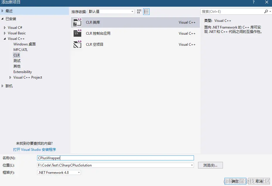 新建CLI类库(DLL)->CPlusWrapper
