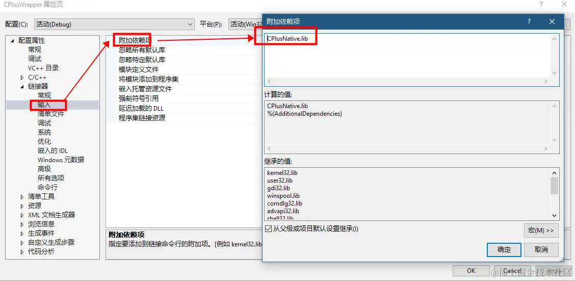 添加附加库依赖项 CPlusNative.lib