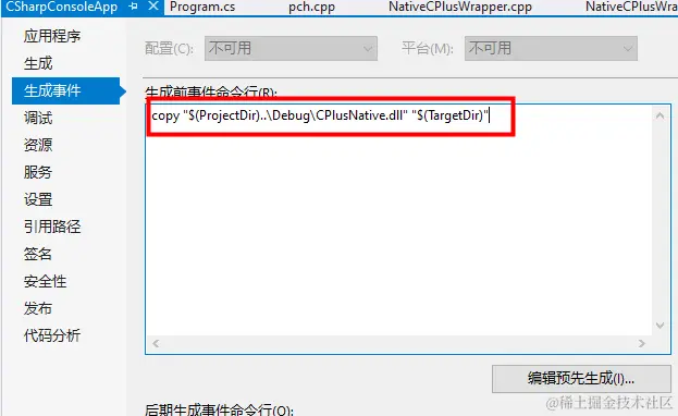 或者使用Pre-build event command line