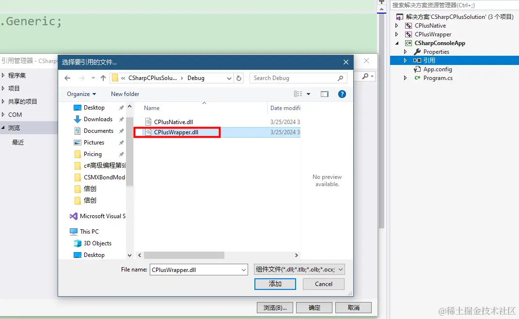 添加CPlusWrapper.dll引用