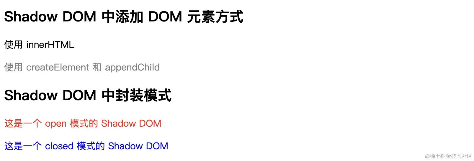 shadowRoot.innerHTML = '<p>这是一个自定义元素</p>';