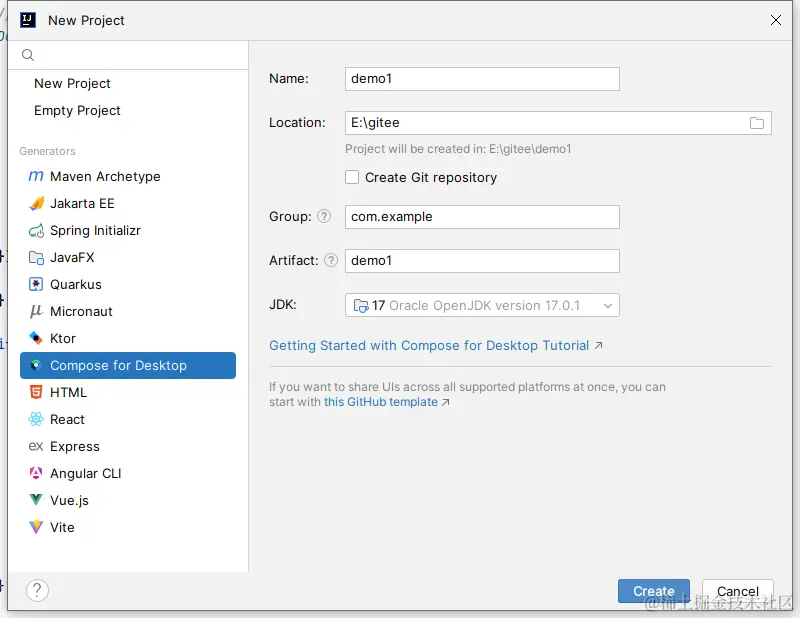 建议下载最新的idea客户端,可以很容易的创建Compose For Desktop项目。