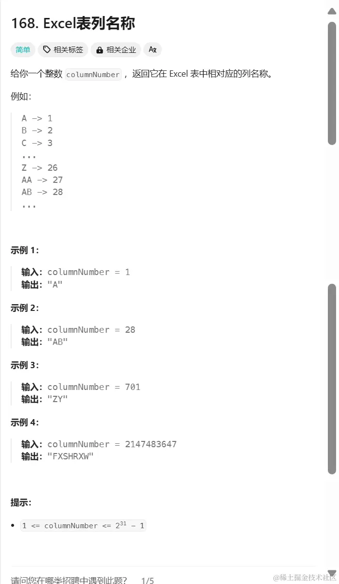 和进制转换的区别,这个没有 0。。带来的影响就是不能像 10 进制一样除以 10 除以 10,因为他有 0,这个 26 进制除 26 也不行,除 27 也不行。