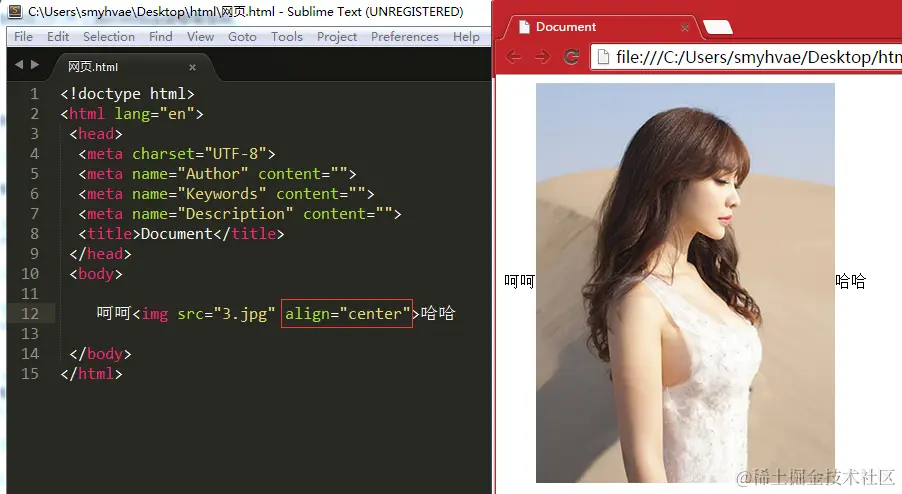 1、align="",图片和文字底端对齐。即默认情况下的显示效果: