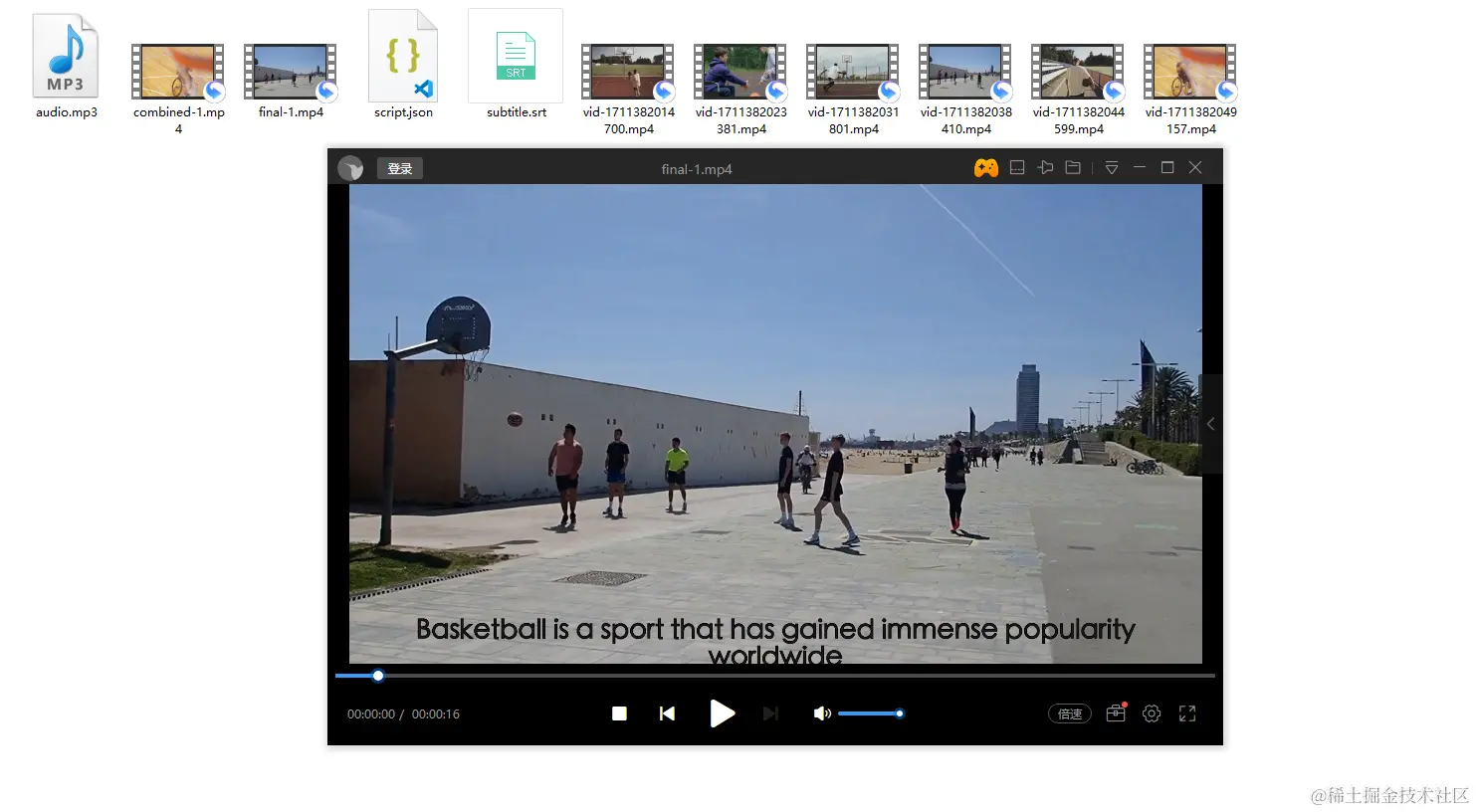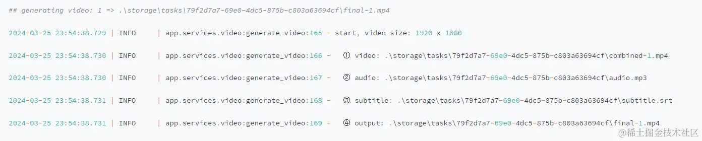 7、任务 ID 对应的文件夹中会有视频、音频、字幕素材以及最终的合成视频