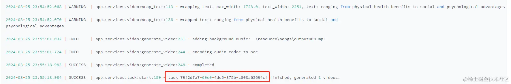 5、视频生成好后最后会生成一个任务 ID