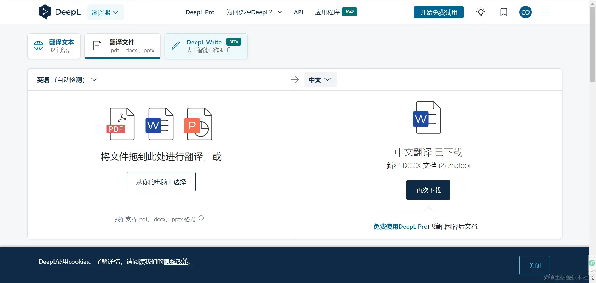 我在学习四六级英语的时候总是会用到翻译,一般比较简单的段落句子当我想要进行翻译的话我一般都是去搜索进行翻译,但是有时候我需要进行一个文件的翻译的时候我就感到头疼了,搜索网页里面可没有进行文件的翻译呀,于是我问问和我一起学习的同学,他给我推荐了DeepL这款工具,我去试用了一下这款工具,它不仅能够进行普通句子翻译,还能进行文件的翻译,翻译完之后会给于我一个已翻译的新文件!一下子我的学习的效率马上就上来了。