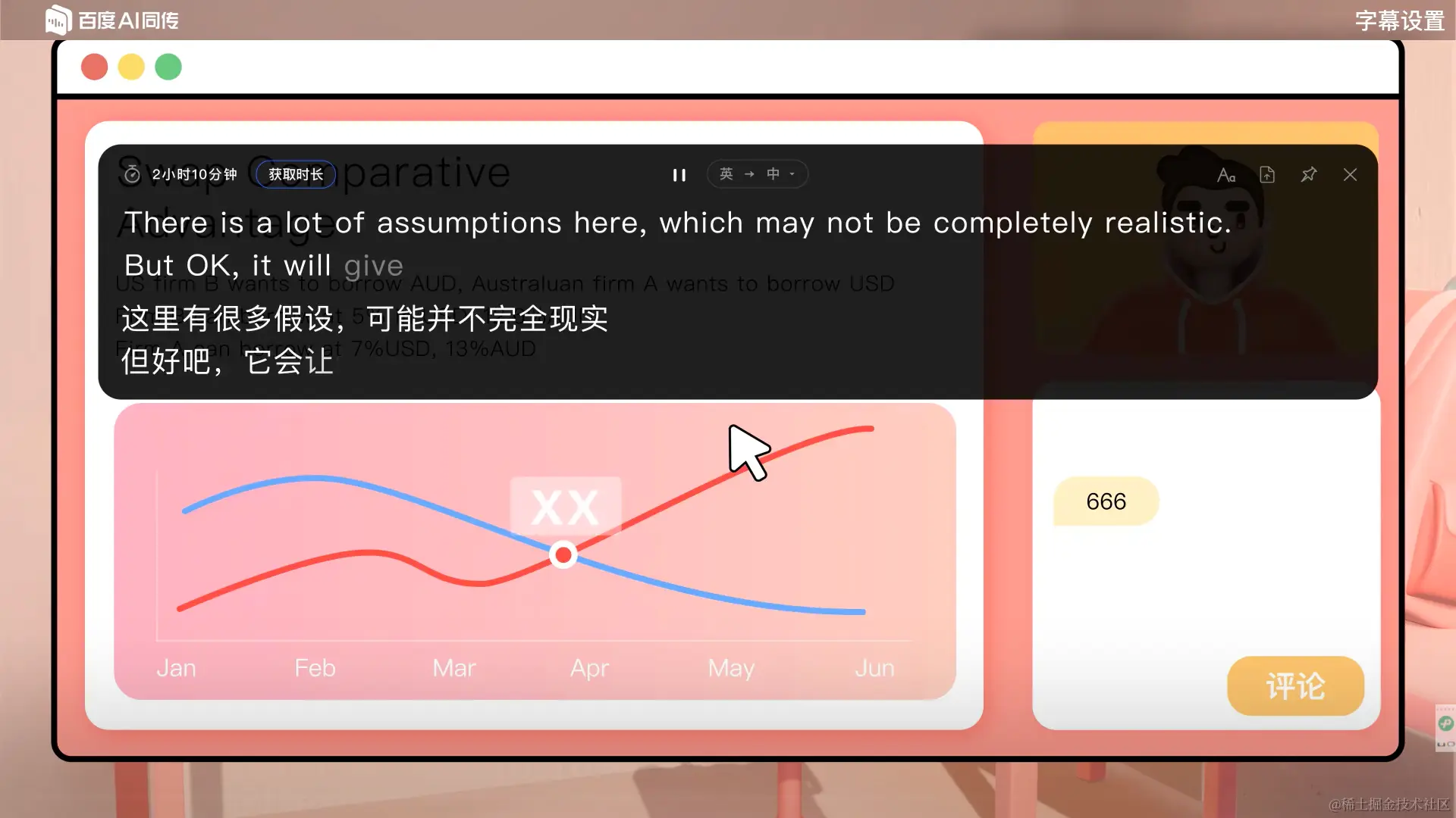 我只好去寻求我的英语老师给我帮助,没想到老师还真有办法!他给我推荐这百度 AI 同传助手这款工具,它能够实时的将视频里面的外文字幕转化成中文,让视频变成了一个双语字幕。这下我学外文网课可就方便多了!大家遇到视频是外文字幕的都可以来使用一下这款工具。