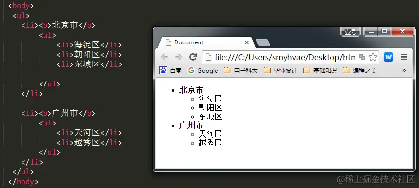 1、无序列表<ul>,无序列表中的每一项是<li>