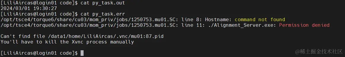 执行上述代码,如下图所示。当然,我这里因为待执行的任务存有一些权限上的错误,所以在py_task.err文件中,给出了任务执行过程中的报错内容。