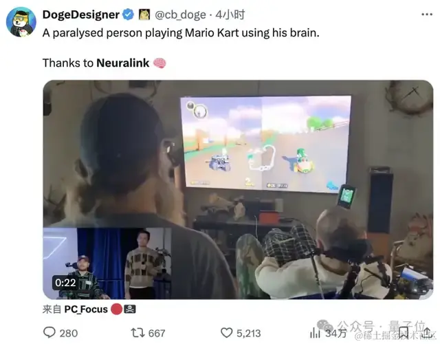 肩部以下全无知觉的他,只靠脑中的一块芯片,就打起了马里奥赛车游戏。