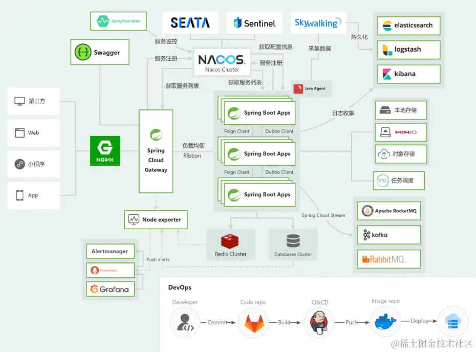 业务熔断:采用Sentinel实现业务流量控制、熔断降级、系统负载等多个维度保护服务的稳定性,避免服务之间出现雪崩;