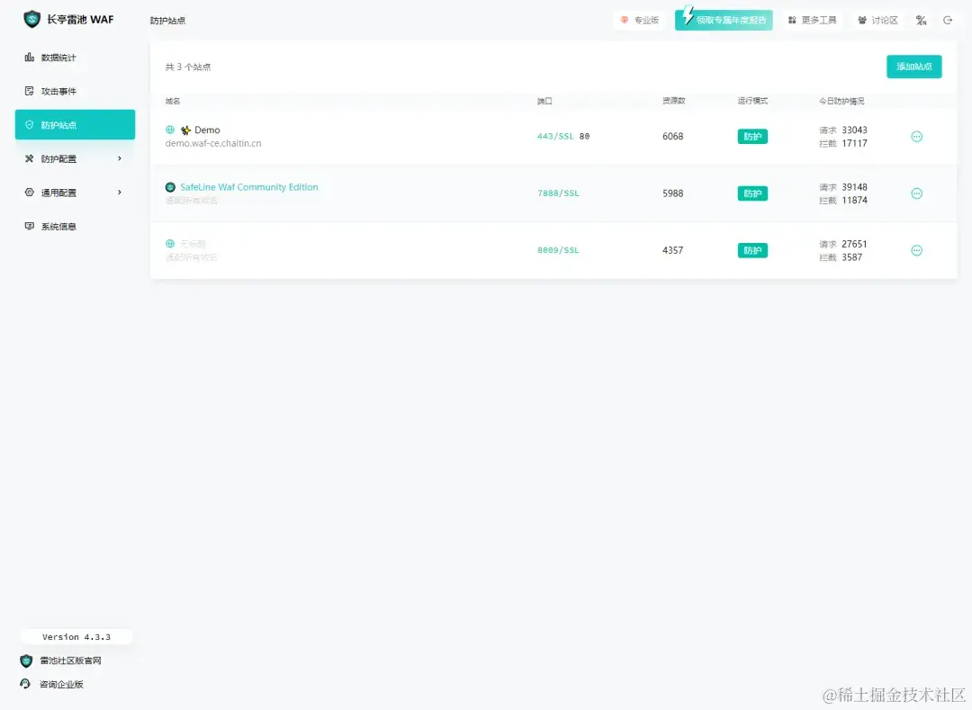 雷池也有开源版本,开源项目 SafeLine 已经获得了 8.0K 的 Star,基于业界领先的语义引擎检测技术,作为反向代理接入,保护你的网站不受黑客攻击。