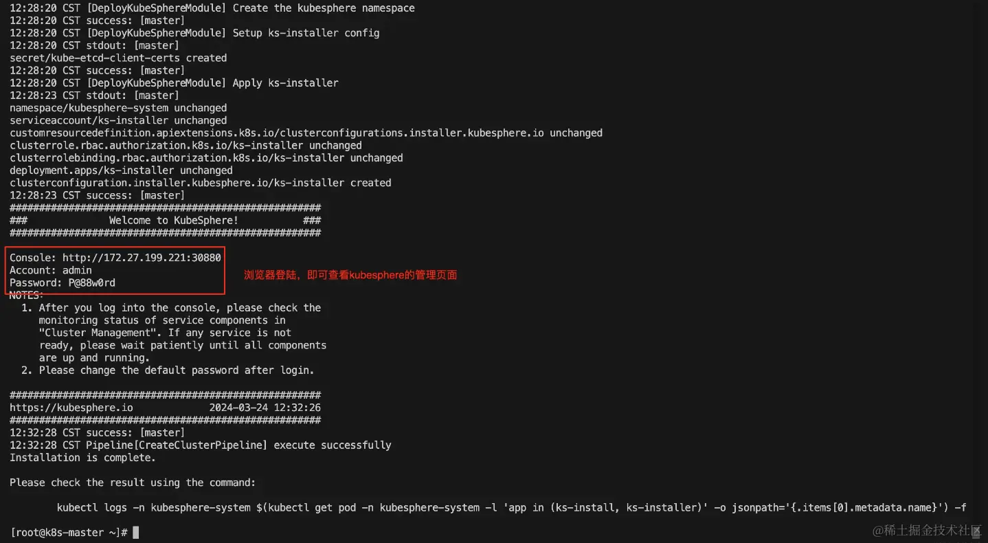 可以通过下面命令查看,kubesphere的执行日志