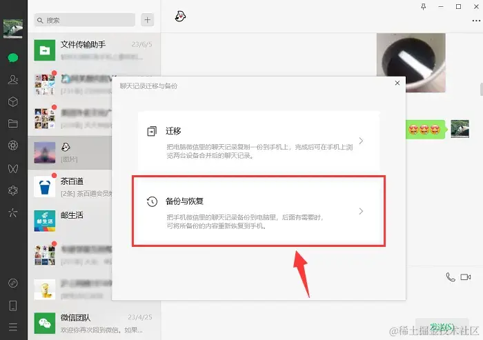 PS:还有另一种模式【备份聊天记录至电脑】。这种方法需要习惯在电脑上登录微信时进行备份的人群,然后在手机上与电脑一起操作。在手机上完成操作后,在电脑上选择需要恢复的聊天记录即可。