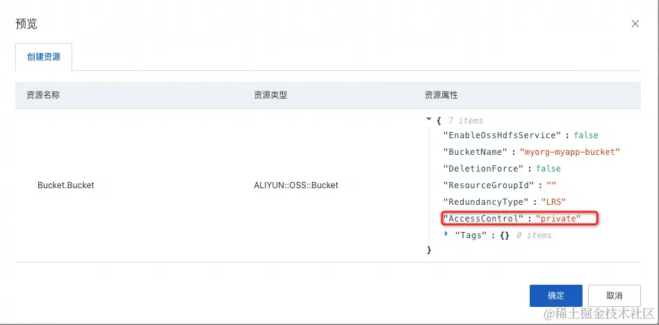 预览资源栈,Bucket为私有。
