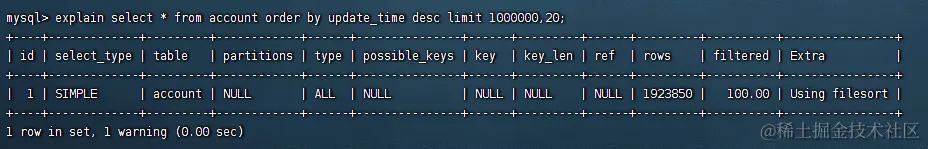 select * from account order by update_time desc limit 1000000,20;