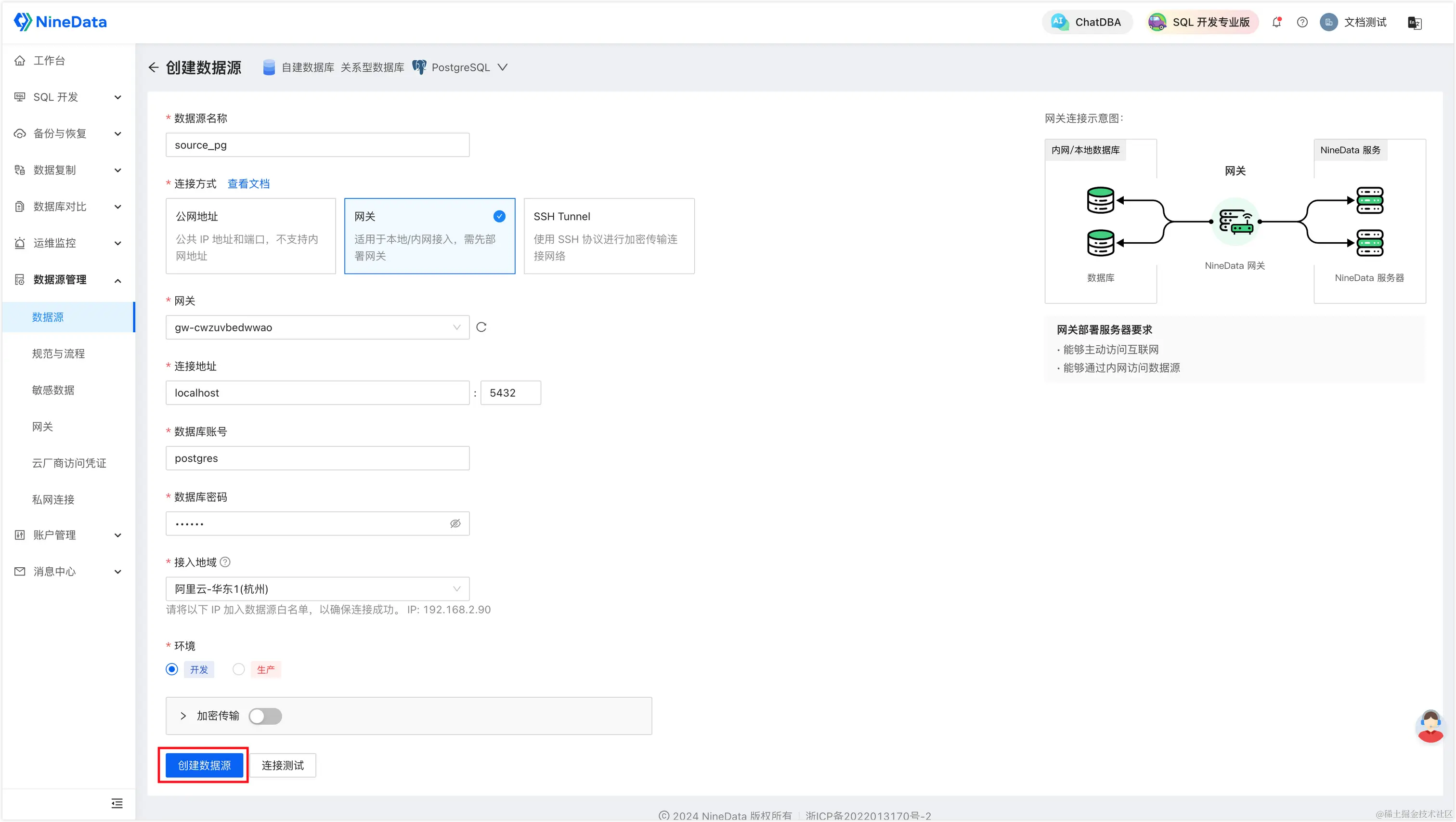 根据页面提示进行配置,然后单击创建数据源完成创建。