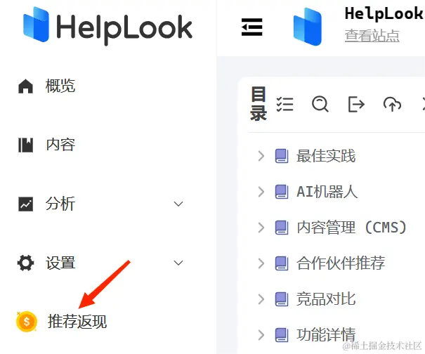 产品客户端内会有明确的指引(如下图HelpLook客户端-“推荐返现”)。同时,团队的CS运营成员在每次完成服务之后,也需要对老用户进行指引。