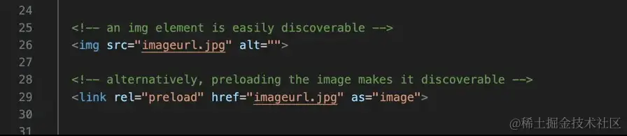 有关提前加载 LCP 资源,上面我们看到了 LCP 元素是图片,可以如下操作: