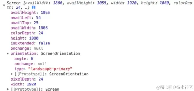 代码返回对象包括屏幕尺寸信息: