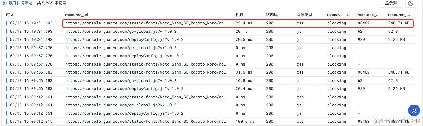 - resource_encode_size: 传输大小,如下图所示,就列出了具体资源的大小和传输大小