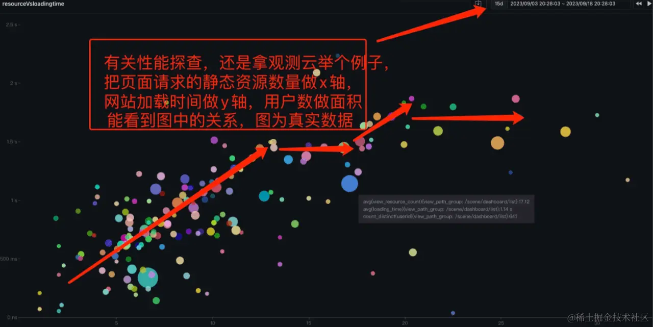 对于性能影响的因素很多,比如 js_size , css_size , dns_time , tcp_time 等,哪个因素才是最关键的因素呢。 我们可以利用统计学的方式,从真实数据中来看,做相关性分析,根据找到的因素或者页面进行优化: