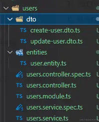 nest g res users 这样就创建了一个users文件夹,里面包含了controller、service、dto、entities等